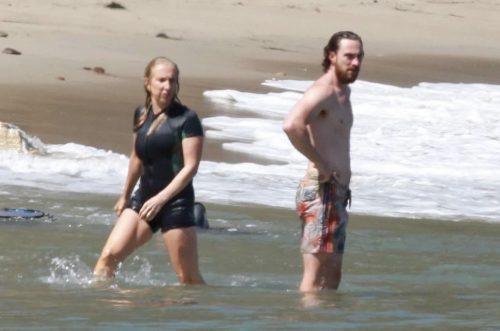 Britanski glumac Aron Tejlor-Džonson (31) nedavno je „uhvaćen“ dok ispija kafu i uživa sa priajteljima na suncu u Malibuu u Kaliforniji, a društvo mu je pravila i 23 godine starija supruga Sem.