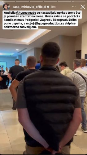 – Audicija Hype Zvezda se nastavljaju uprkos tome što je pokušan atentat na mene. Hvala svima na podršci a kandidatima u Podgorici , Zagrebu i Beogradu želim puno uspeha, a mojoj Hype produkciji ekipi neizmerno zahvaljujem -napisao je Saša.