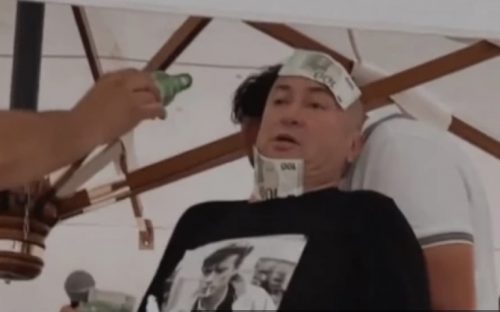 Naime, Đani je sa gostima stajao na klupama gde su se veselili, a on im je ispunjavao želje. Oni su ga tako oblepili novčanicama, koje nisu bile manje od sto evra, a imao ih je i na čelu, te na vratu!