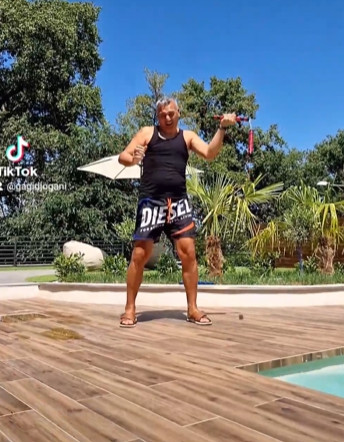 Gagi, poznati denser često objavljuje video snimke na kojima pleše, a sada je uhvatio nunčake pokazao umeće na bazenu.