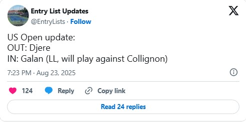 Naime, Laslo Đere morao je da se povuče sa US opena, samo nekoliko dana pred meč prvog kola!