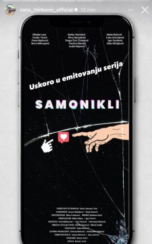 -Nova igrana serija urađena u saradnji Hype production i TS Media će uskoro na male ekrane! 62 epizode prikazuju današnju situaciju u društvu i porodici koja je nestala zbog nepažnje u odrastanju dece koja sve više sazrevaju uz internet i rijaliti programe i zato je serija dobila naziv: “SAMONIKLI”. Pogledaćete pa razmislite da li smo u pravu! – napisao je Mirković svojevremeno na svom Instagram nalogu.
