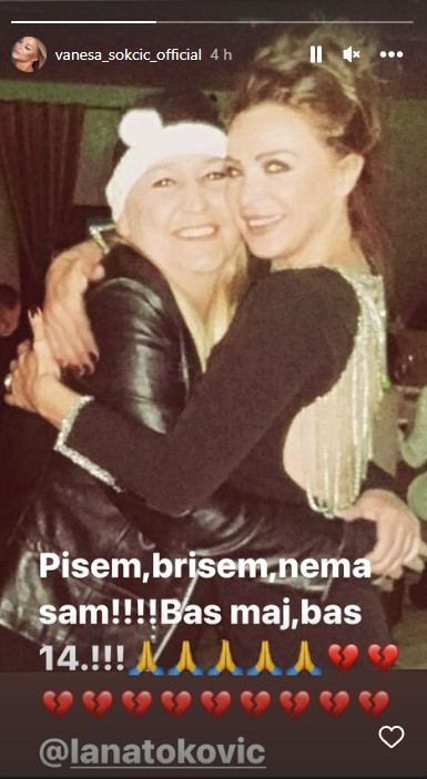 Na društvenim mrežama je uz tužnu poruku podelila sliku na kojoj je zagrljena sa Lanom.