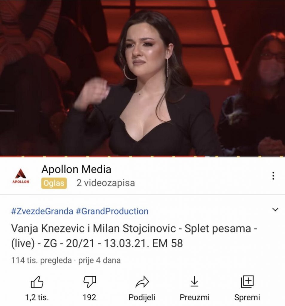 Ali, to nije sve. Zanimljiva je i činjenica da su emisije takmičenja „Zvezde Granda“ prosečno imale po milion pregleda na Jutjubu pre skandala zbog kojeg je Vanja Knežević izbačena iz šou. Nakon toga, sporna emisije u kojoj se desio njen sukob sa članicom žirija imala je oko dva miliona pregleda, što znači da je Grandova zarada od toga duplirana. Umesto prosečnih 5.000 evra, koliko zarađuje jedna emisija od Jutjuba, Grand je tada dobio više od duplo – oko 10.000. Tako kažu podaci sajta „Jutjuber.me“.