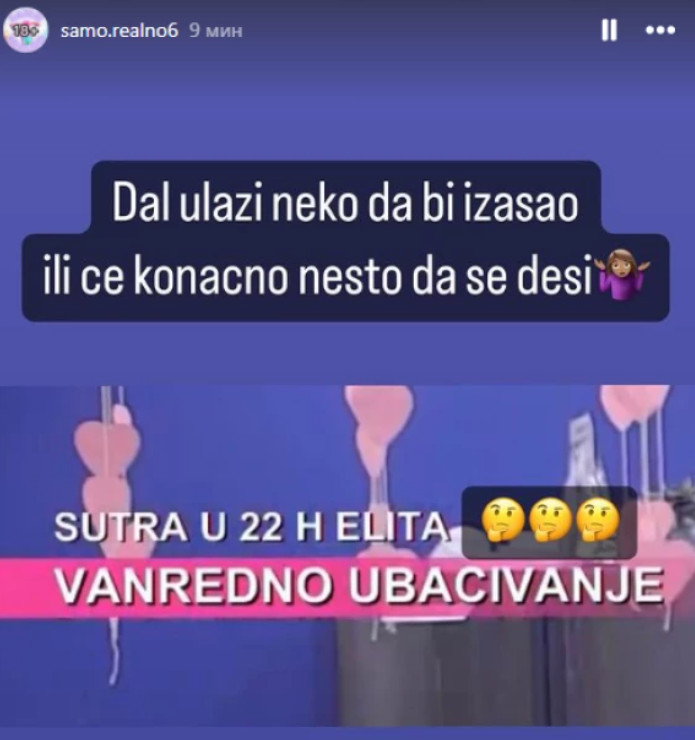 Još uvek nije zvanično potvrđeno ko će sutra biti vanredno ubačen. Na društvenim mrežama spekuliše da je u pitanju neko od bivših zadrugara, koji su tokom boravka u prethodnim rijalitijima imali jako burno takmičenje i ko može da totano poremeti nekog od aktuelnih stanara u Šimanovcima.
