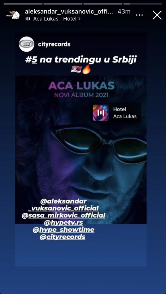 Nakon izlaska albuma koji je najavljivao pravi bum, pesme beleže popularnost širom regiona što se može videti i na storiju  “City Recordsa” koji je objavljen na njihovom zvaničnom Instagram nalogu.