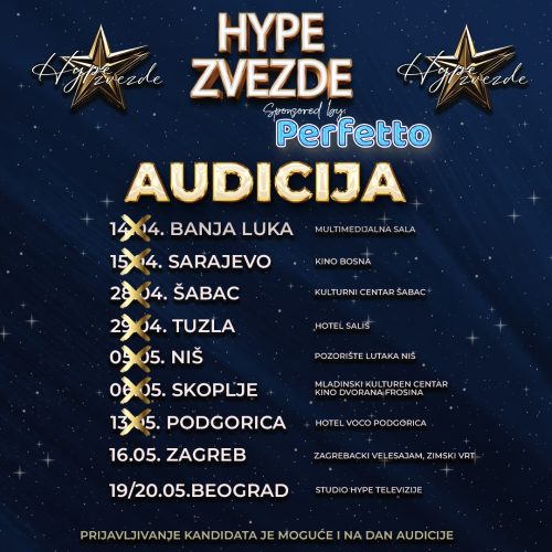 EVO GDE ĆE SE ODRŽATI PRVE SLEDEĆE AUDICIJE ZA “HYPE ZVEZDE”