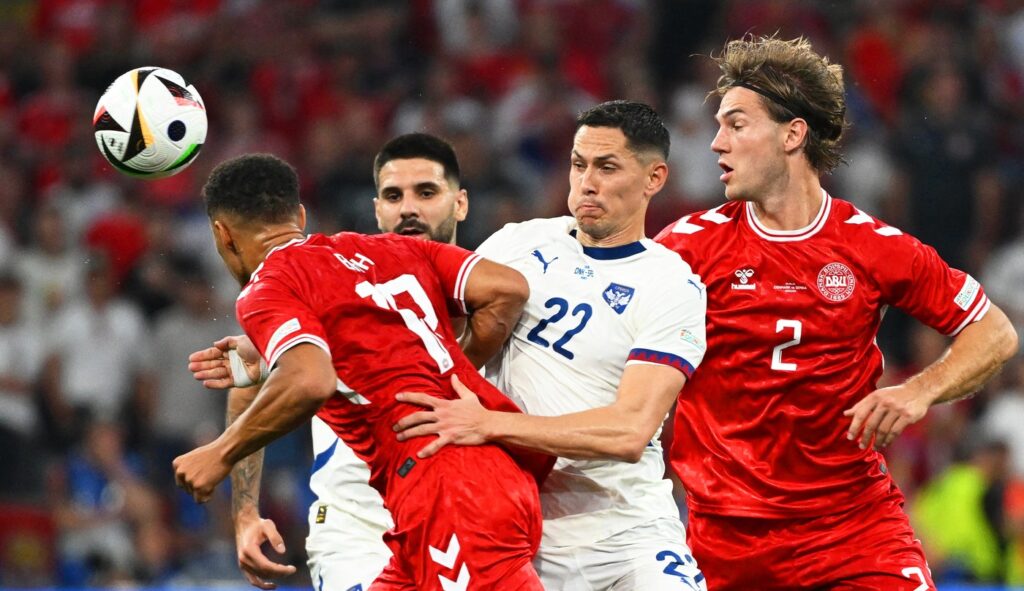Napadači Danske muče naše defanzivce u prvom poluvremenu utakmice trećeg kola grupne faze Evropskog prvenstva.