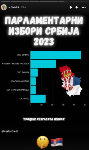 On se oglasio na društvenoj mreži Instagram gde je podelio procene rezultata izbora, pruživši tom prilikom i javnu podršku listi Aleksandar Vučić – Srbija ne sme da stane.