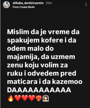 Kako je istakao, Durdžić želi da Staniju odvede kod matičara i da se venčaju.
