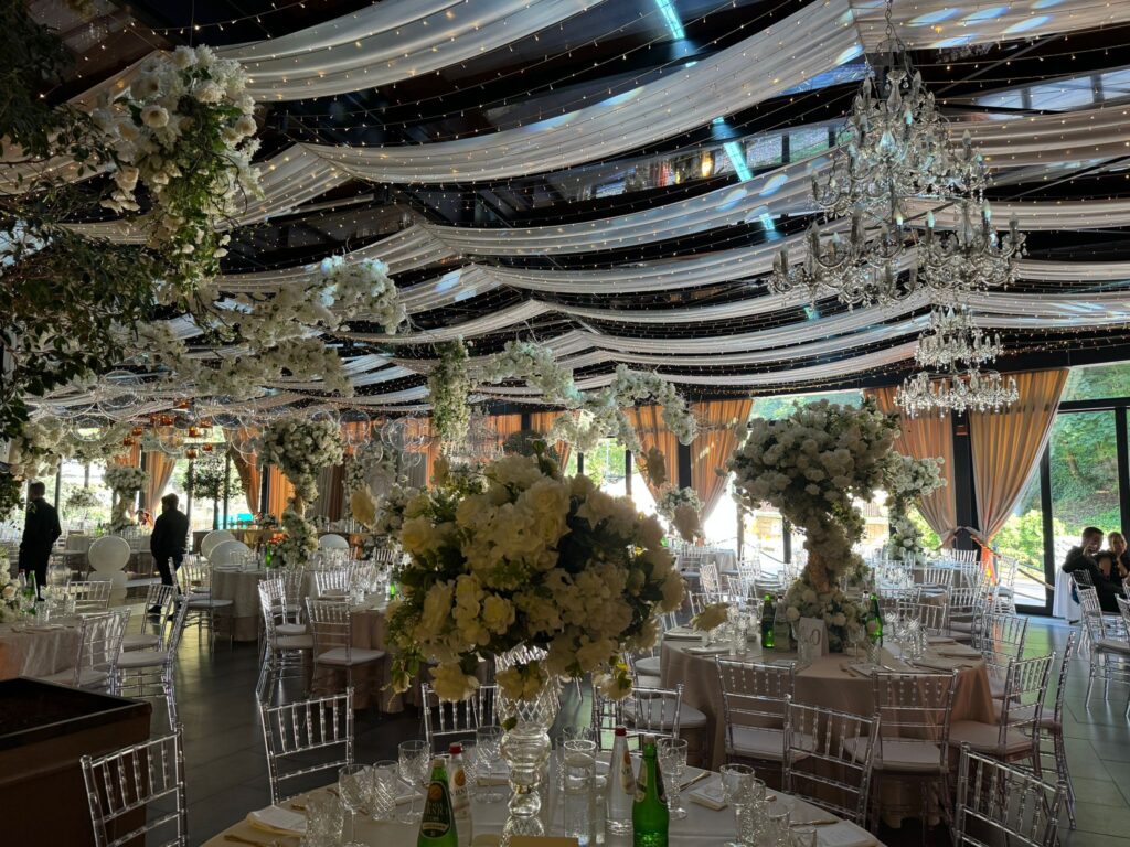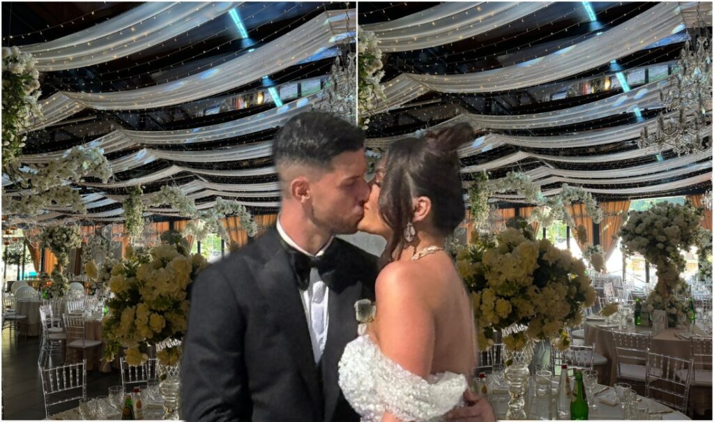 Mladenci su se potrudili da svaki detalj bude besprekoran, a dekoracija od belih ruža dominirala je prostorom svečane sale. Zlatnim slovima urezani su inicijali novopečenog bračnog para, dodajući lični pečat ovom veselju.