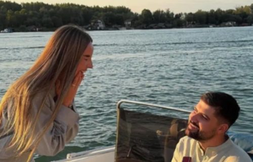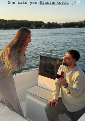 Lein partner zaprosio ju je brodu, a influenserka nije krila oduševljenje. Na fotografiji se vidi kako je prekrila lice rukama od ushićenja dok je njen partner kleknuo i izvadio prsten.