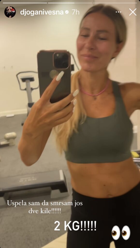 Ali to nije sve! Vesna se nije zaustavila samo na rečima. Uz poruku „Uspela sam da smršam još dva kilograma“, ponosno je pokazala svoju figuru u minijaturnom bikiniju koji joj je savršeno pristajao. Bez obzira što je na pragu pete decenije života i što iza sebe ima dva porođaja, Vesna je izgledala neverovatno zategnuto i fit.
