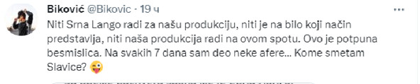 – Niti Srna Lango radi za našu produkciju, niti je na bilo koji način predstavlja, niti naša produkcija radi na ovom spotu. Ovo je potpuna besmislica. Na svakih 7 dana sam deo neke afere… Kome smetam Slavice? – napisao je Miloš na pomenutoj mreži.