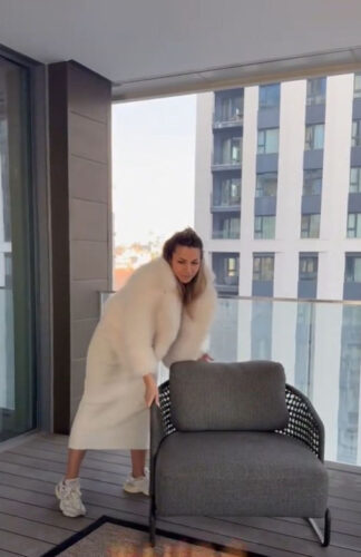 Osim terase, ona je pokazala i deo stana u koje su prosotrije odvojene staklenim zidovima, poseduje ogroman drveni sto i veliki video bim.