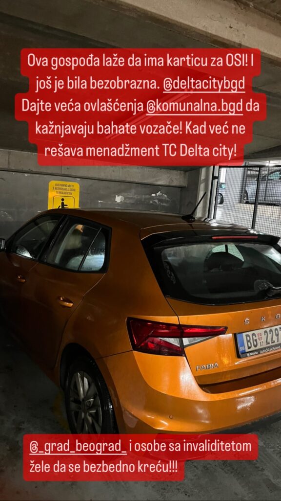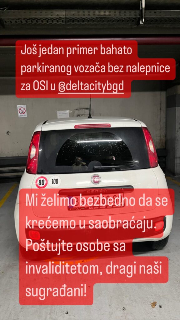 Nije retkost da se ljudi parkiraju na mesto namenjeno invalidima, čak iako nemaju nalepnicu OSI, naročito je to česta pojava u tržnim centrima.