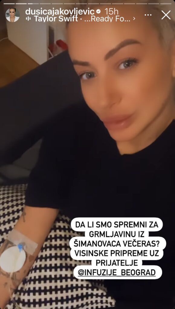 Naime, Dušica je napisala da prima vitamine i da se sprema za emisiju, samim tim potvrđujući da je sve u redu, kao i da prima koktel vitamina ne bi li poboljšala imunitet