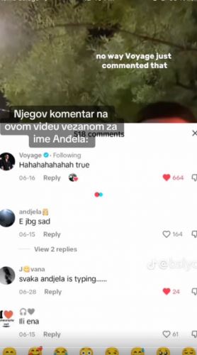 Naime, na jednom TikTok snimku na kojem piše „Ako se ikad osećaš loše, bar se ne zoveš Anđela“, Vojaž je ostavio komenar.