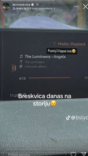 -Breskvica na to nije ostala duža, pa je objavila kako sluša pesmu „2Anđela“ i uz to dodala komentar.