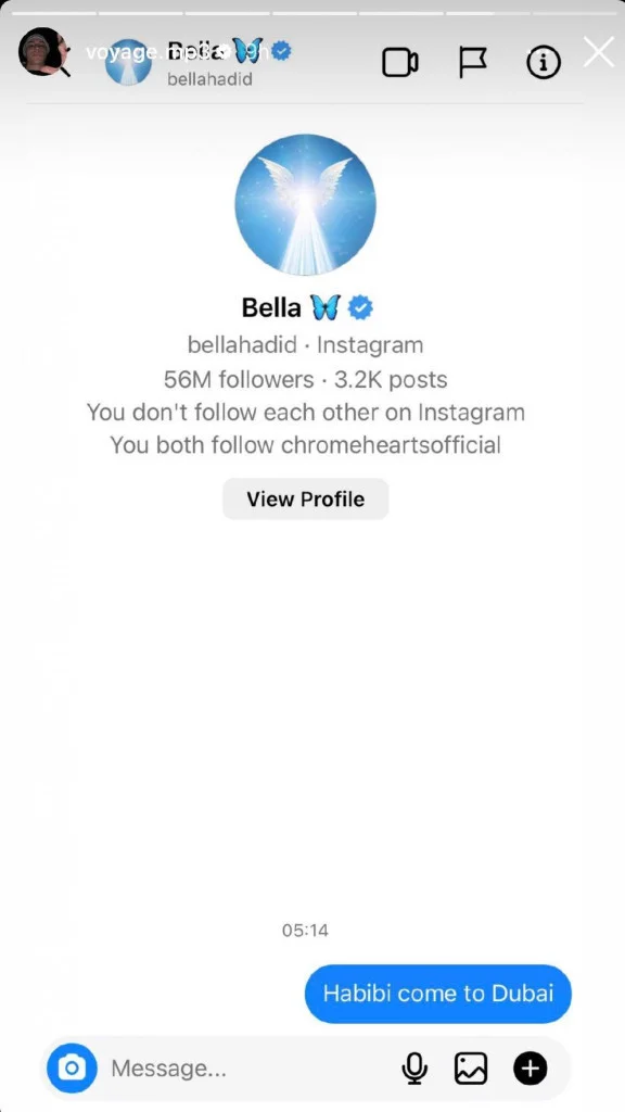 Vojaž objavio je na svom Instagram profilu skrinšot prepiske sa planetarno popularnom manekenkom Belom Hadid.