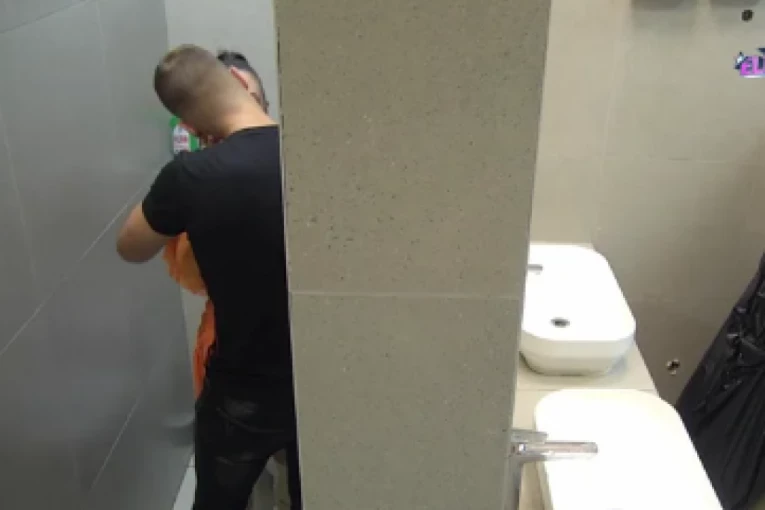 Uroš Rajačić i Kristina Buđevac kako se spekuliše su razmenjivali nežnosti u toaletu. Navodno, rijaliti ljubavnik nije mogao da se obuzda pa je dohvatio cimerku.