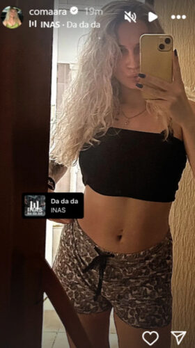 Naime, ona je pozirala u kratkom šortsu koji je isticao njene vitke noge, a crnu majicu je podigla kako bi njen go stomak došao u prvi plan.