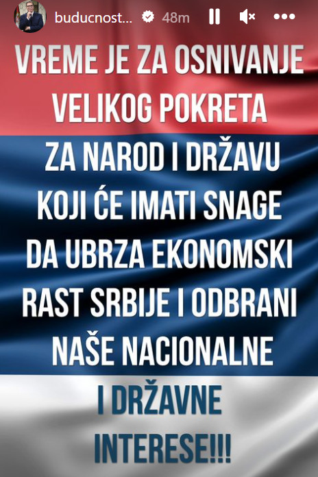 Predsednik Srbije Aleksandar Vučić najavio je na svojoj instagram stranici formiranje velikog pokreta za narod i državu.