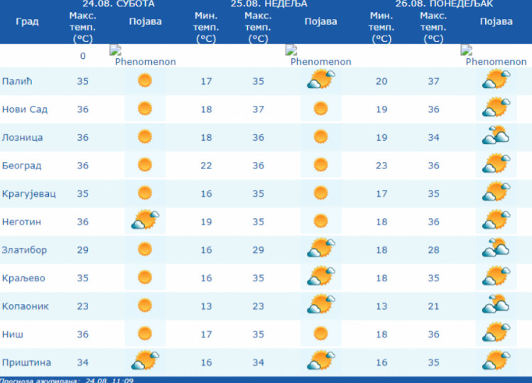 Zbog temperatura koje će prelaziti 35. podeljak na Celzijusovoj skali, na teritoriji cele zemlje je na snazi narandžasti meteoalarm.