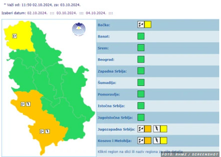 U svim ostalim delovima Srbije „goreće“ žuti i narandžasti, i to zbog kiše, grmljavine, ali i vetra.