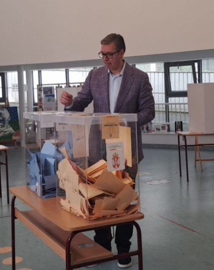 Predsednik je svoje građansko pravo iskoristio na biračkom mestu 140 u zgradi Dečijeg vrtića „Tesla-nauka za život“, u Bulevaru Crvene armije 1 na Novom Beogradu.