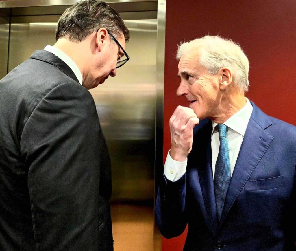 Zatim, sa predsednikom Vlade Kraljevine Norveške Jonasom Gar Stereom, za koji je predsednik rekao da je to bio vrlo kratak razgovor o najvažnijim porukama Samita o budućnosti, kao i o bitnim pitanjima saradnje između Srbije i Norveške i evropskom putu naše zemlje.