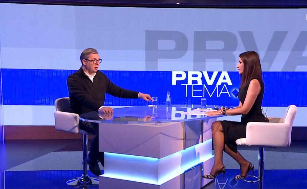 Predsednik Srbije Aleksandar Vučić gostuje večeras u emisiji „Prva tema“, gde će govoriti o sednici GS Ujedinjenih nacija, rezoluciji o Srebrenici i velikim pritiscima sa kojima se suočava naša zemlja.