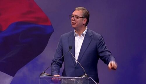 Predsednik Srbije Aleksandar Vučić poručio je okupljenima u Trsteniku da će Srbija biti prva država po stopi rasta u Evropi, „uprkos svim brutalnim napadima“.