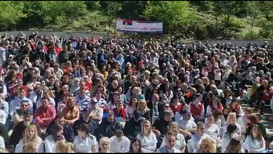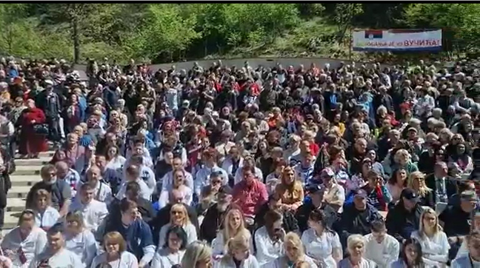 Naša zemlja nije u lakoj situaciji, ali moram da kažem da je samo nekoliko dana posle onih lažnih izbora onaj okupacioni gaulajter Kurti rešio da ukloni jednu branu koja čuva naš narod na severu KiM. A to će da mu prođe kod onih sa Zapada jer on kaže da ne želi geto… A jedini cilj mu je da protera sve Srbe sa Kosova.. – rekao je Vučić pred više od 3.000 građana koji su ga pozdravljali gromoglasnim aplauzima.