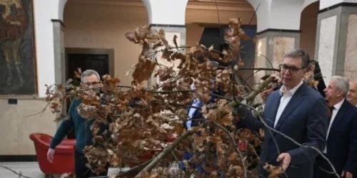 Na Badnji dan predsednik Aleksandar Vučić uneo je badnjak u zgradu Predsedništva na Andrićevom vecu.