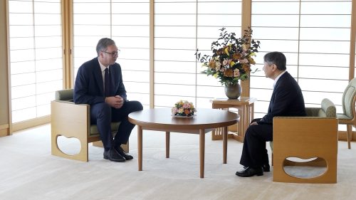 Predsednik Republike Srbije Aleksandar Vučić nalazi se na audijenciji kod Njegovog Veličanstva japanskog cara Naruhita u Carskoj palati u Tokiju.