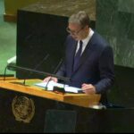 Predsednik Srbije Aleksandar Vučić govori na generalnoj debati 79. zasedanja Generalne skupštine. Ujedinjenih nacija (GS UN), na kojoj se okupilo više od 140 svetskih lidera i predstavnika država.