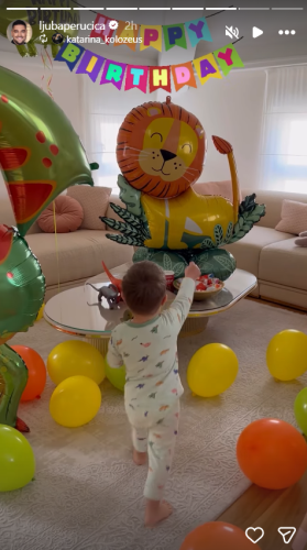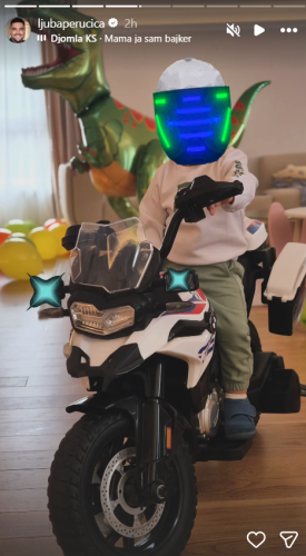 Dečak je, kako je Ljuba podelio na Instagramu, uživao u balonima. Jedan je bio poseban jer je bio u obliku dinosaurusa.