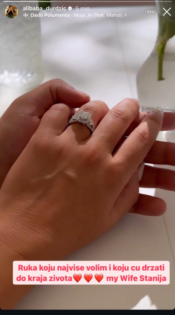 Durdžić se oglasio večeras objavivši ruku svoje izabranice sa vereničkim prstenom.