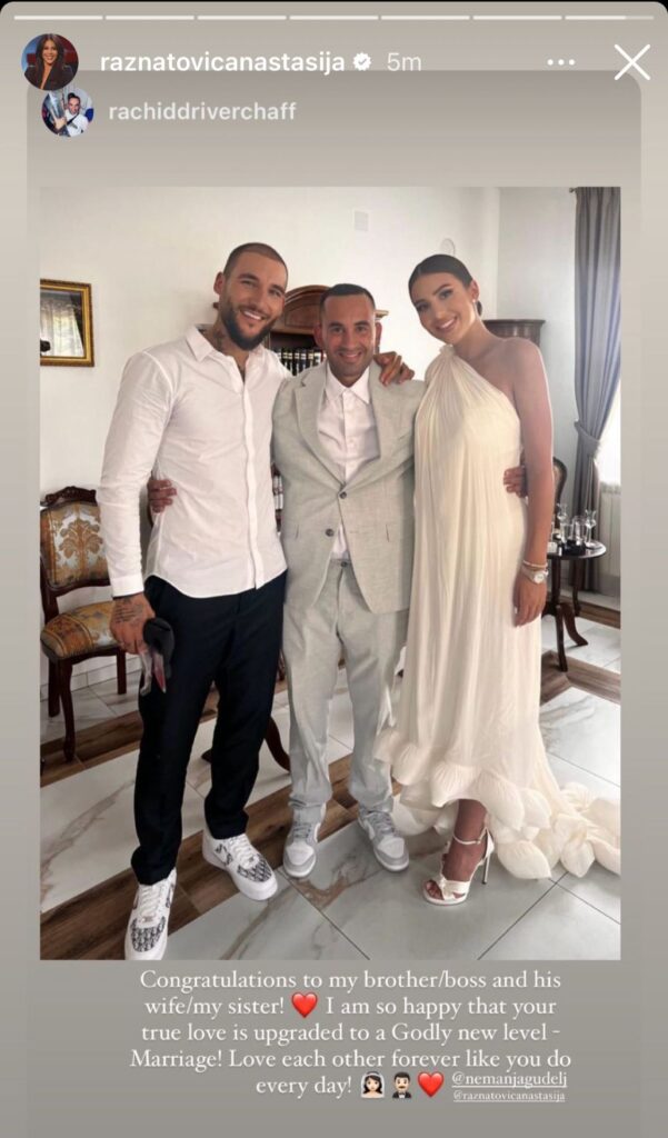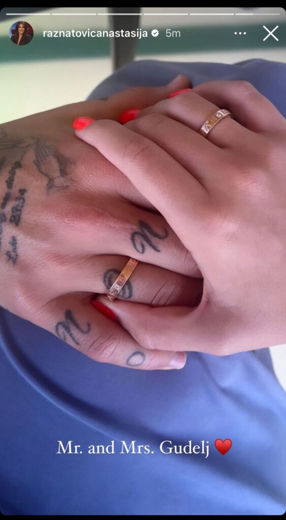 Veliko uzbuđenje i sreća zavladali su među obožavaocima kada se na društvenoj mreži Instagram pojavila fotografija koja je potvrdila venčanje Anastasije Ražnatović i poznatog fudbalera, Nemanje Gudelja.