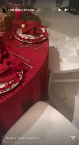 Milica Mitrović i Željko Mitrović odlučili su da dom za praznike okite u crvenim nijansama, te su teko ruže, sveće, mašne, salvete, tanjiri i stoljnaci bili u toj boji.