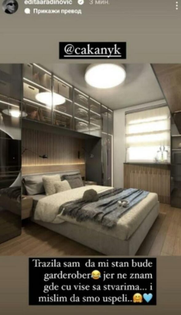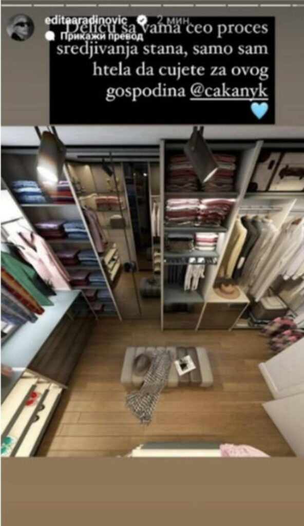 -Recimo, mnogi su mi prigovarali zašto sam uzela arhitektu ili zašto nisam okačila na Instagram da bi mi neko to uradio za „dž“ ali to smo mi, balkanske glave, no naišla sam na firmu, koja je prevazišla čak i moju prvobitnu zamisao. Zato sam odlučila da ću deliti ovaj proces sa vama, jer znam koliko je važno da odete u prave ruke, pogotovo ako ste u fazonu da sve bude 10/10 – napisala je Edita, te istakla da ima problem sa odlaganjem garderobe jer je, kako kaže, ima previše.