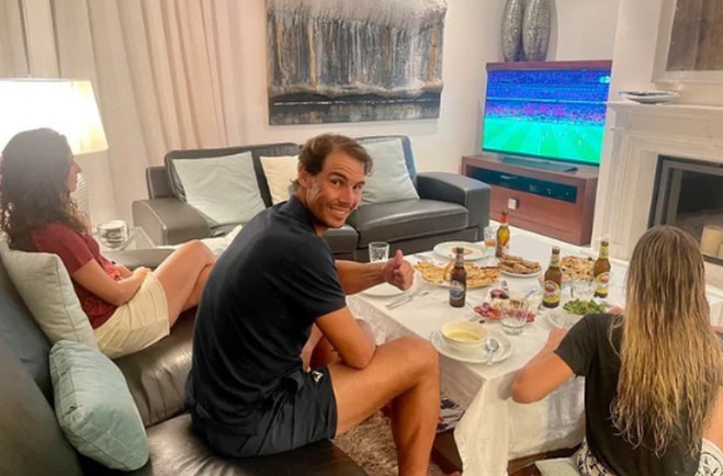 Španski teniser Rafael Nadal u društvu supruge i sestre pratio je okršaj reprezentacija Španije i Hrvatske na Evropskom prvenstvu u Nemačkoj, a slika iz njegovog doma zapalila je društvene mreže.