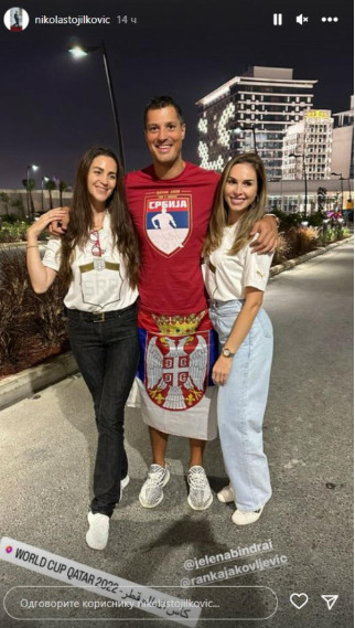 Nekadašnja mis Srbije stigla je u Katar sa ocem Predragom, bratom Peđom i njegovom suprugom Rankom, kako bi svi zajedno ispratili odlučujući meč između Srbije i Švajcarske.