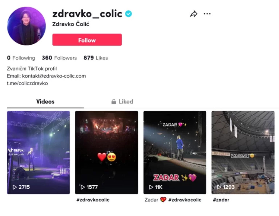 Po svemu sudeći, profil je pravi jer je verifikovan, a na pomenutoj mreži ima 360 pratilaca. Na svom instagram nalogu kači najviše svoje nastupe, pa je tako odlučio da na tik toku kači najzanimlojivije videe.
