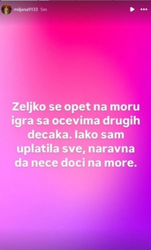 – Željko se na moru opet igra sa očevima drugih dečaka. Iako sam uplatila sve, naravno da neće doći na more. A na rođendan je opet došao da ga ljudi ne bi pljuvali – završila je Miljana.