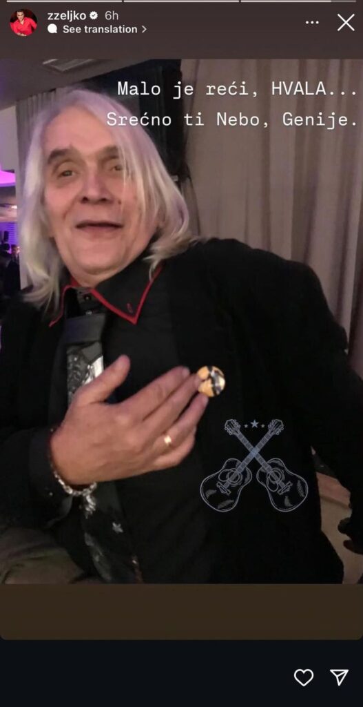– Malo je reći, HVALA… Srećno ti Nebo, Genije – napisao je Željko, a poslednji pozdrav čuvenom rokeru uputila je i Željkova ćerka, Mina Joksimović.