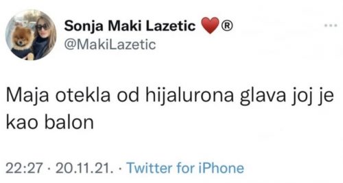 – Maja otekla od hijalurona, glava joj je kao balon – napisala je, a ona su usledili komentari korisnika ove mreže.
