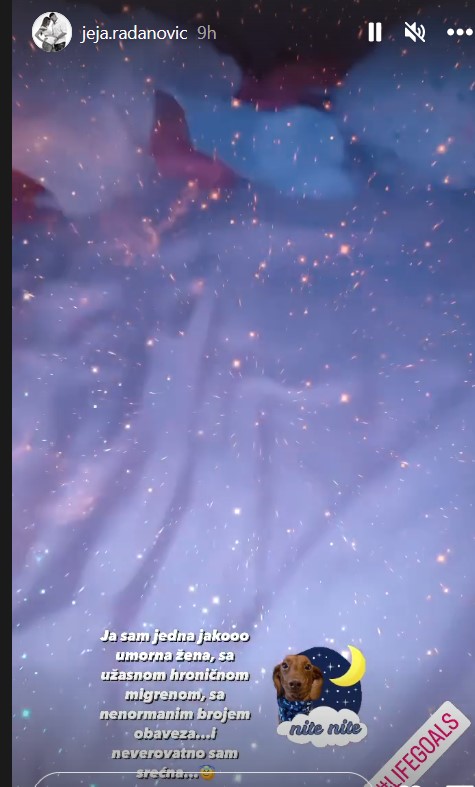 – Ja sam jedna jako umorna žena sa užasnom hroničnom migrenom, sa nenormalnim brojem obaveza… I neverovatno sam srećna – napisala je Slobina žena na svom profilu, a onda pokazala snimak kako ide kroz vilu i obilazi decu koja spavaju. Jer zna se majka uvek poslednja ide na spavanje!