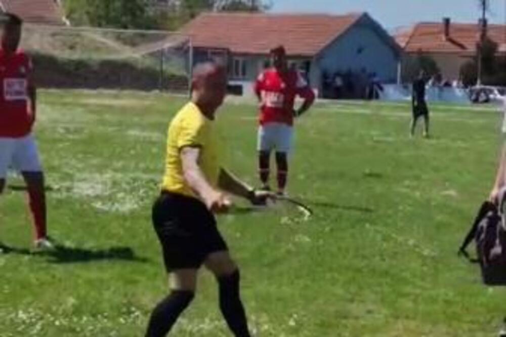 Šokantna scena zabeležena je na utakmici Gradske lige Leskovca između Gornjeg Sinkovca i Radnika iz Šišinca.